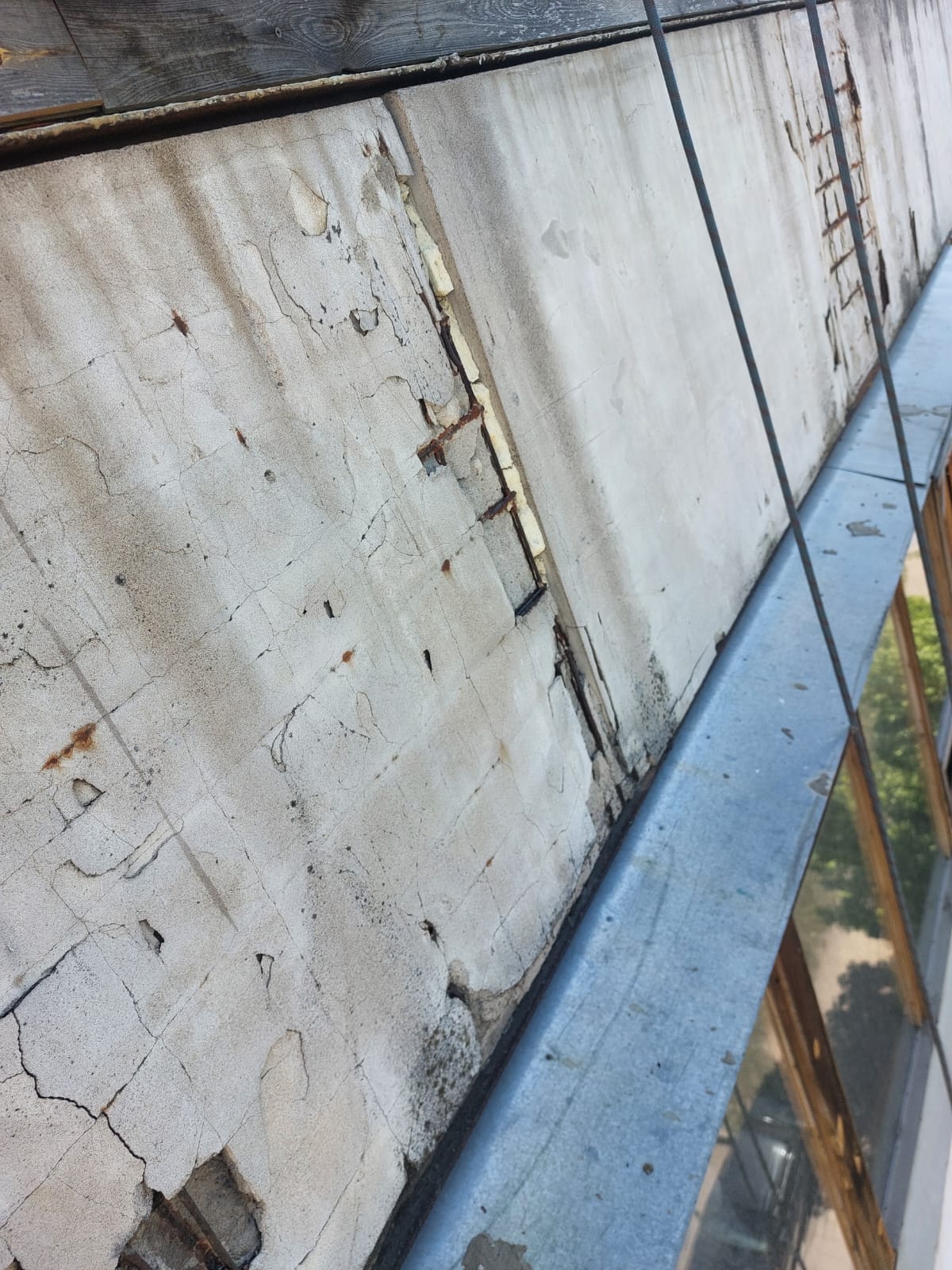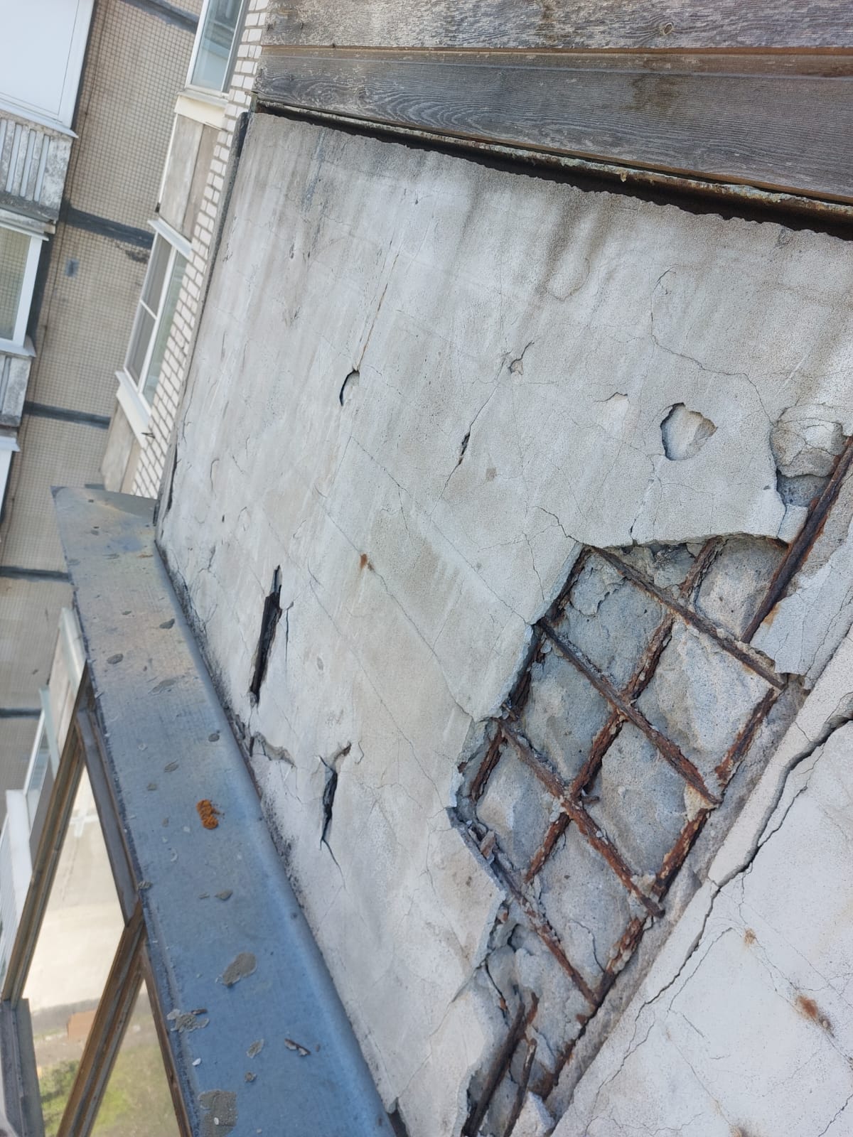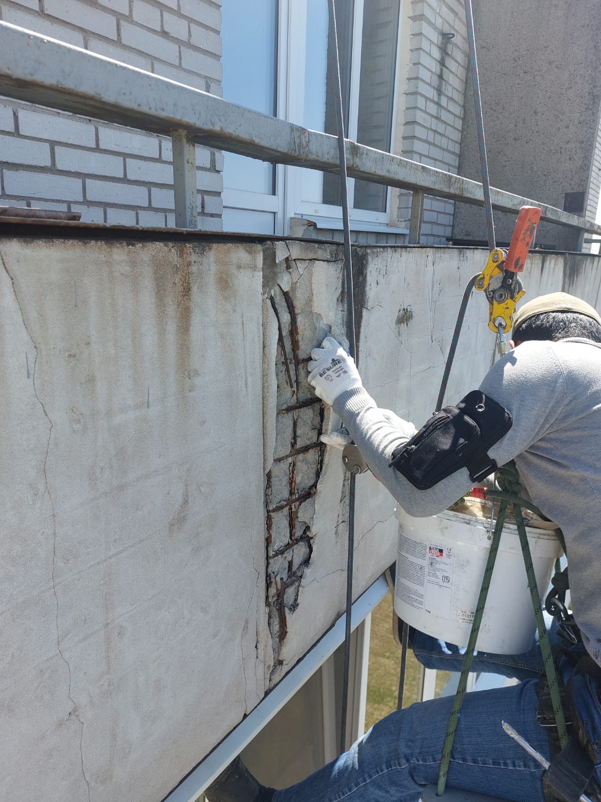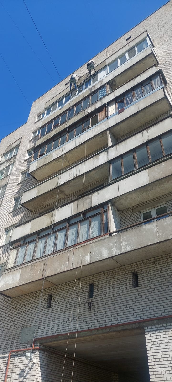 Отбитие и штукатурка балконных плит (работы выполнены с привлечением промышленныхальпинистов)