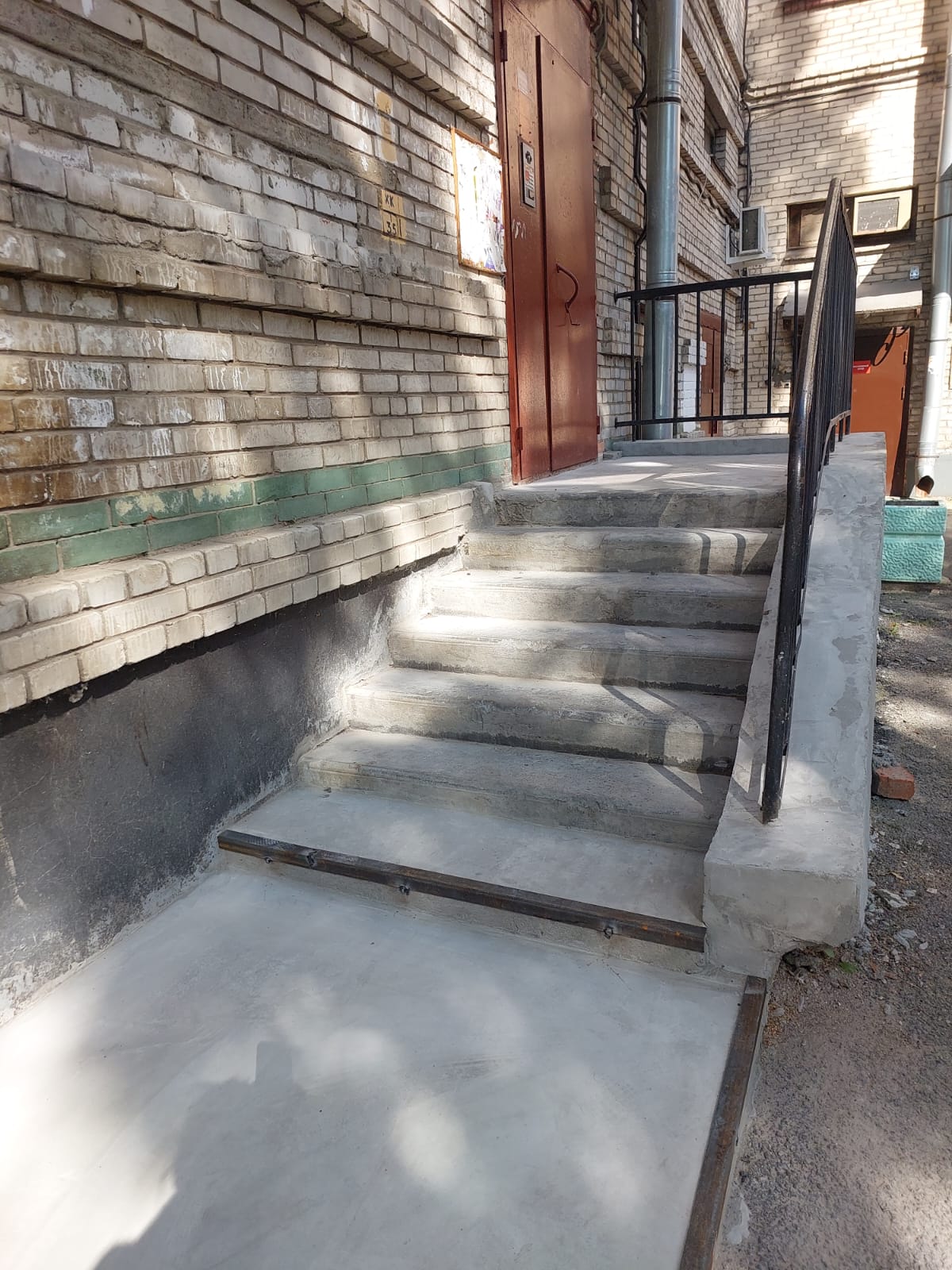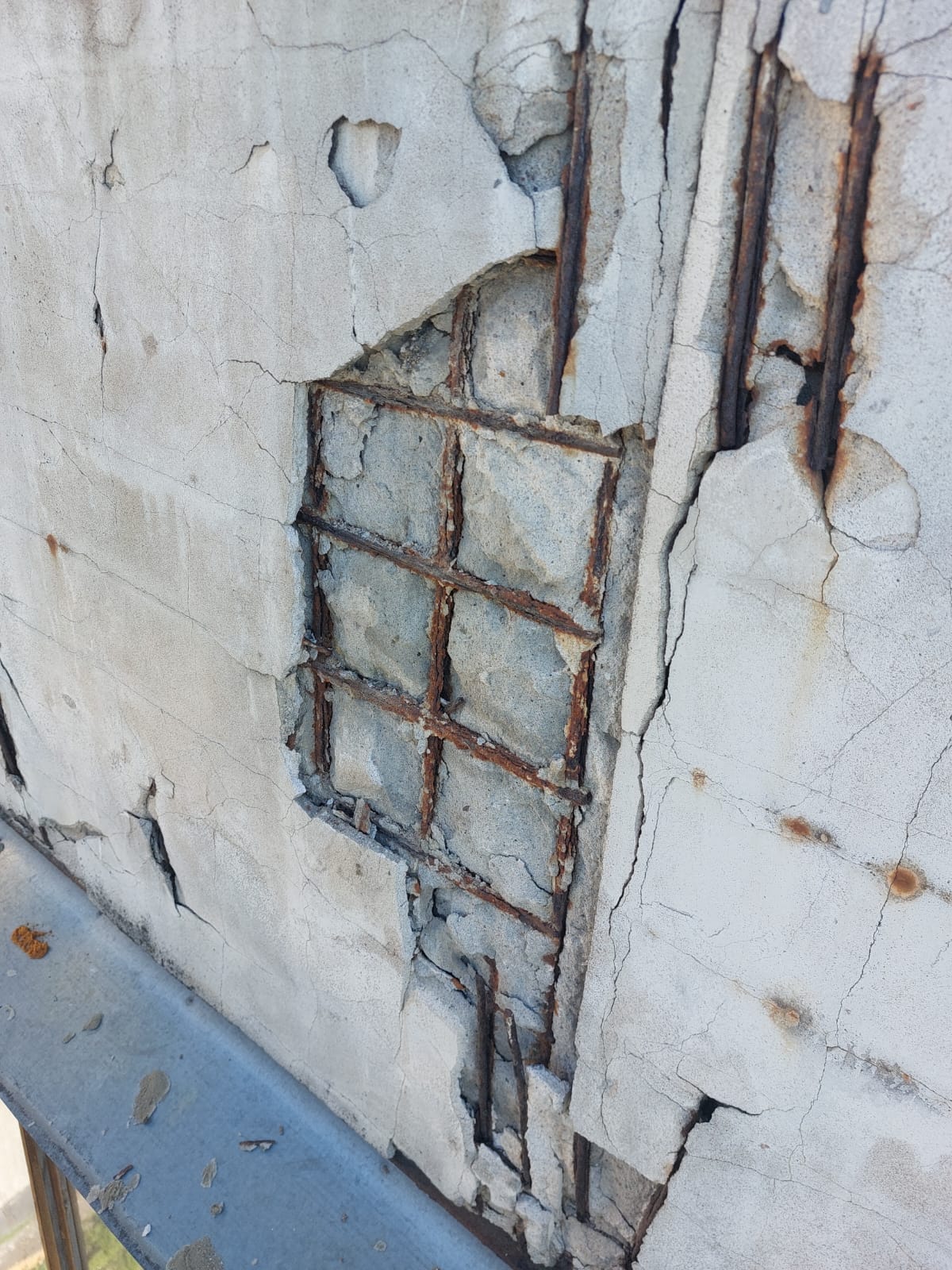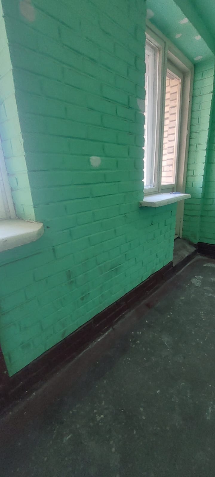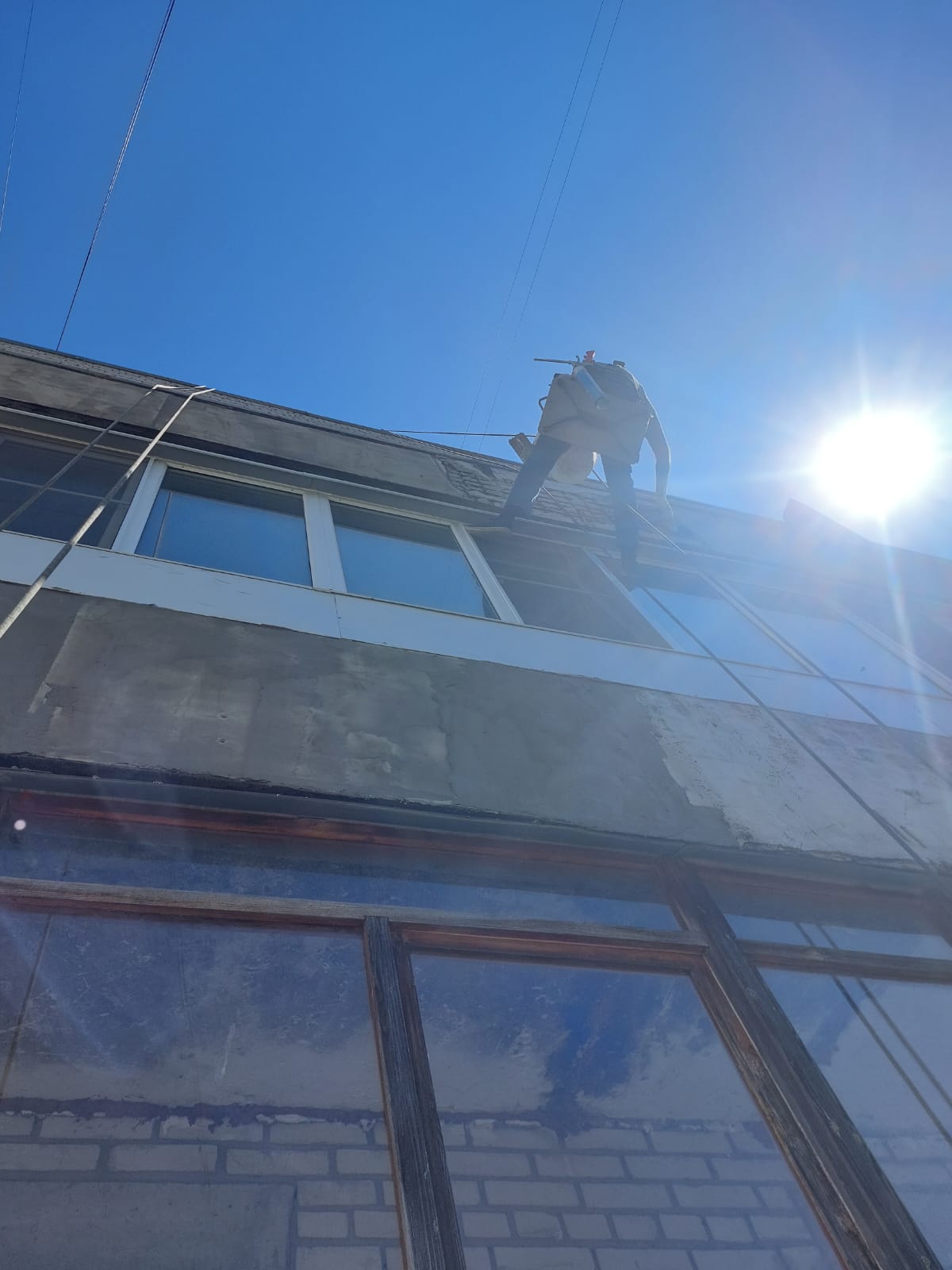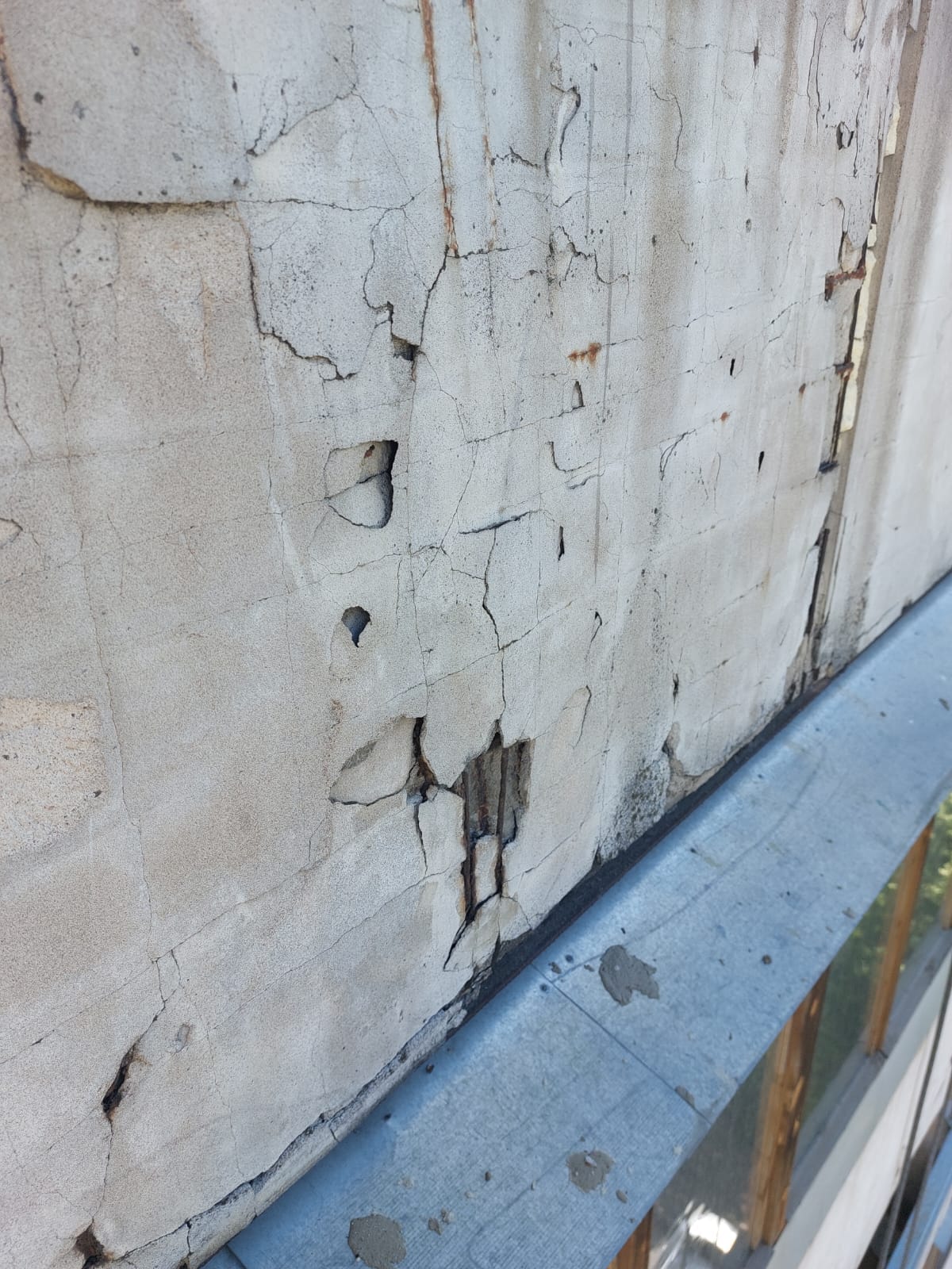 Отбитие и штукатурка балконных плит (работы выполнены с привлечением промышленныхальпинистов)